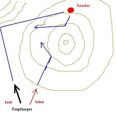 Jeder Baum, Hügel, Bach etc erzeugt Reflektionen. Deshalb kann 5m weiter das Signal aus einer anderen Richtung kommen.